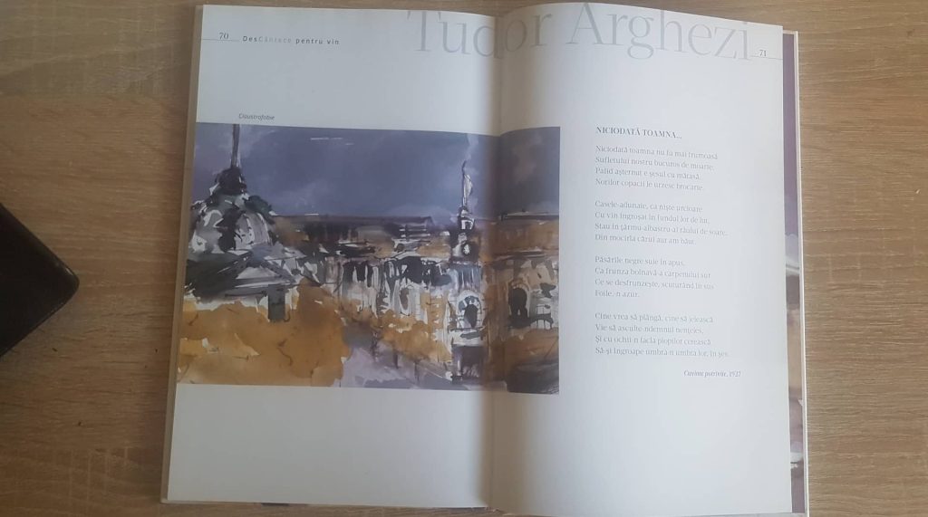 Pe 2 octombrie, la sediul central al Bibliotecii Municipale „B. P. Hasdeu”. O voi invita, desigur, și pe nepoțica mea Teodora Vasiliu de 7 ani, deoarce coperta a fost realizată după un desen al ei. Mă regăsesc în copertă – privindu-i culorile și liniile trasate spontan, ingenuu, am un sentiment de revenire la seninătatea mea de până la anii în care am suferit pierderi, mari și mici, îi mulțumesc Teodorei pentru copertă și sper ca măcar unele poezii din antologie să fie citite și de generația ei.